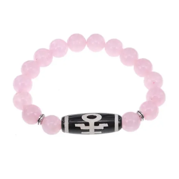 Браслет с бусиной Дзи Аристократ и нат.камнем Розовый кварц BSDS-06-15