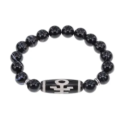 Стрейч-браслет из натурального черного агата с тибетской бусиной Дзи.