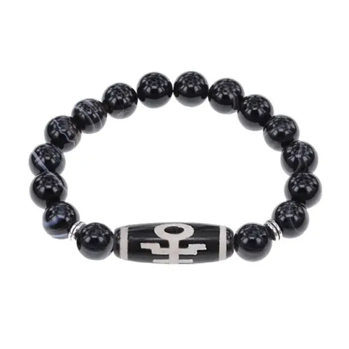 Браслет с бусиной Дзи Аристократ и нат.камнем Черный агат BSDS-06-23