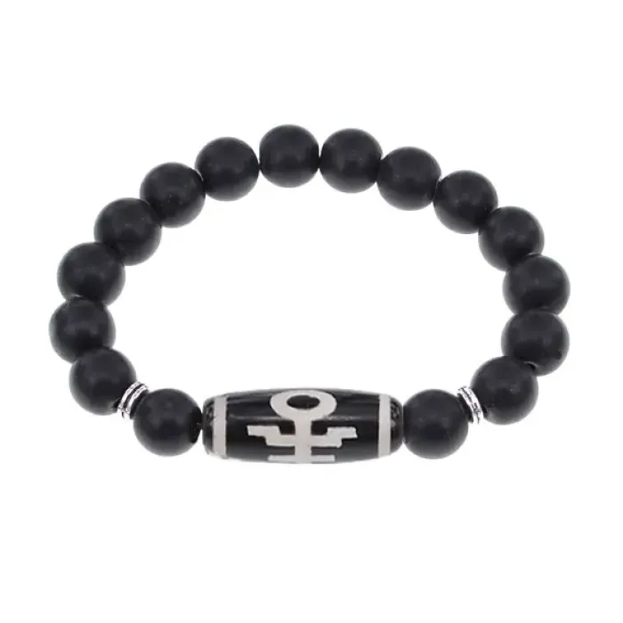 Браслет с бусиной Дзи Аристократ и синт. камнем Шунгит BSDS-06-24