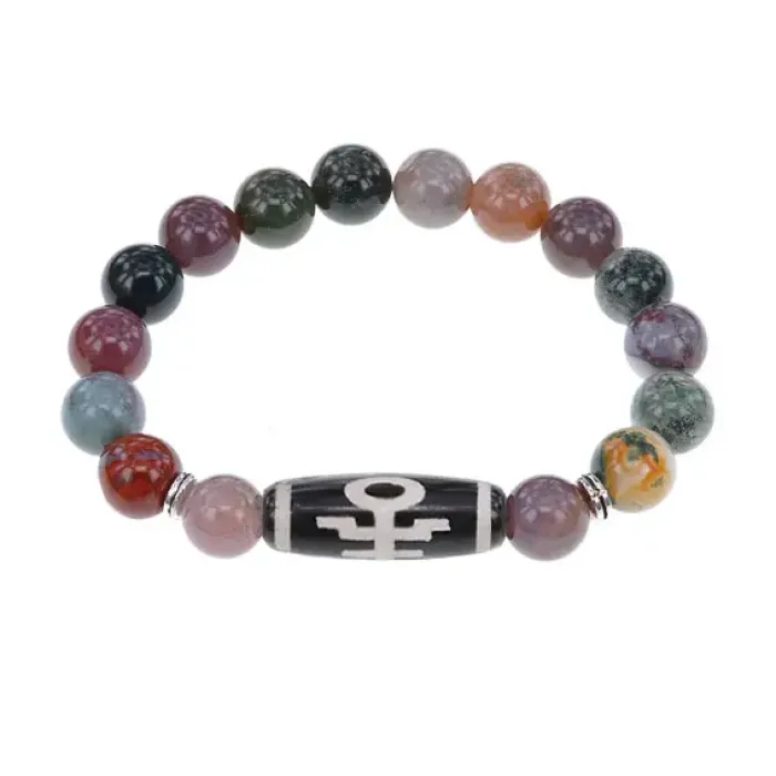 Материал и изготовление: Натуральный камень яшма, агат. Бусина Дзи с тибетским символом.