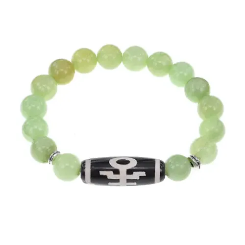 Стрейч-браслет из синтетического камня, украшенный тибетской бусиной Дзи из агата.
