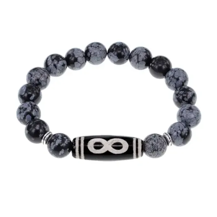 Браслет с бусиной Дзи Бесконечность и нат.камнем Снежный обсидиан BSDS-07-14