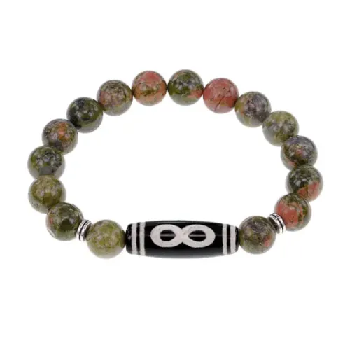 Браслет с бусиной Дзи Бесконечность и нат.камнем Унакит BSDS-07-20