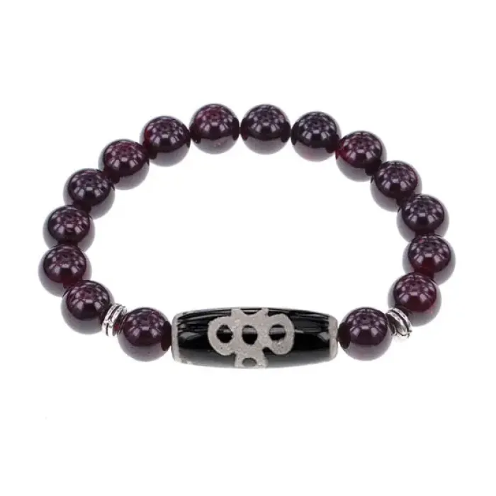 Браслет с бусиной Дзи Гаруда и нат.камнем Гранат BSDS-08-06