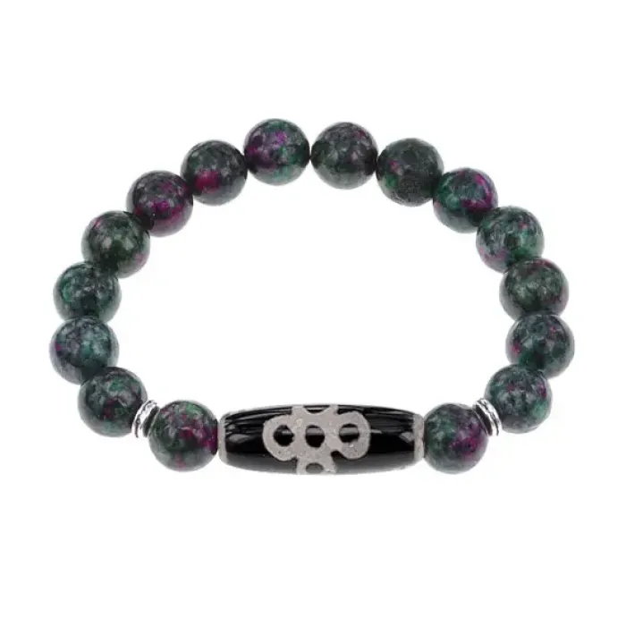 Браслет с бусиной Дзи Гаруда и синт.камнем Цоизит BSDS-08-22