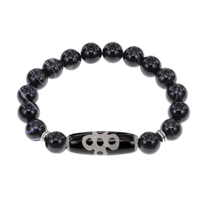Браслет с бусиной Дзи Гаруда и нат.камнем Черный агат BSDS-08-23