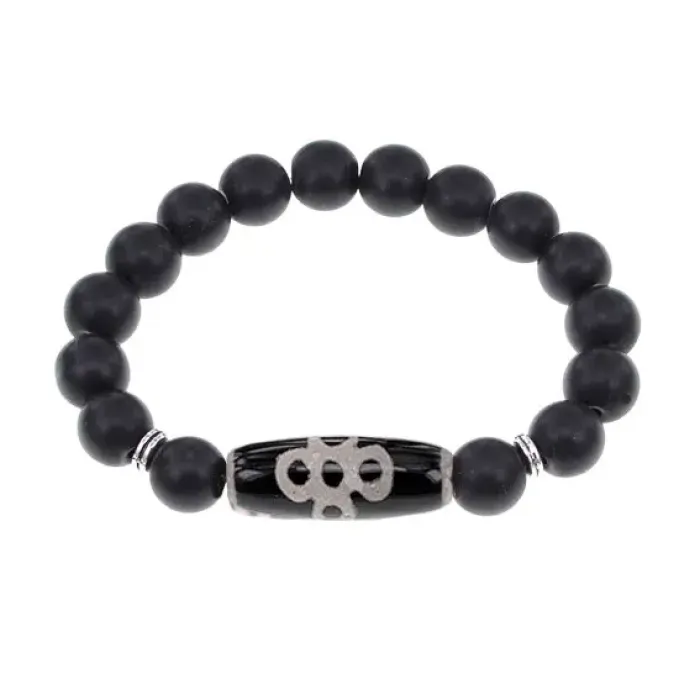 Стрейч-браслет из синтетического камня, имитирующего шунгит, с тибетской бусиной Дзи из натурального агата.