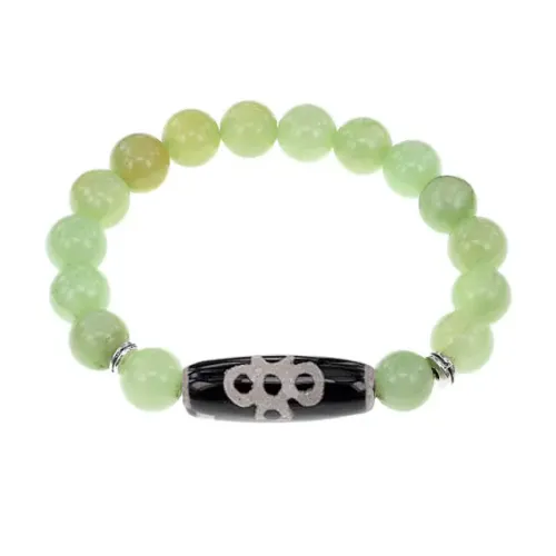 Стрейч-браслет для ношения, украшенный тибетской бусиной Дзи Гаруда из агата и синтетическим камнем, имитирующим оникс.