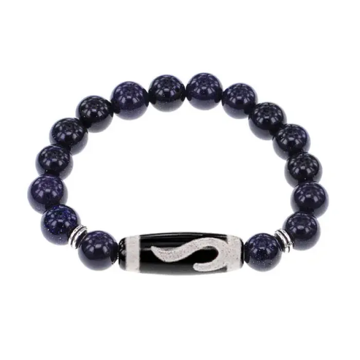 Браслет с бусиной Дзи Золотой ключ и синт.камнем Синий авантюрин BSDS-09-02