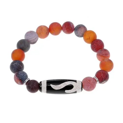Стрейч-браслет из натурального африканского агата с тибетской бусиной Дзи «Золотой ключ».