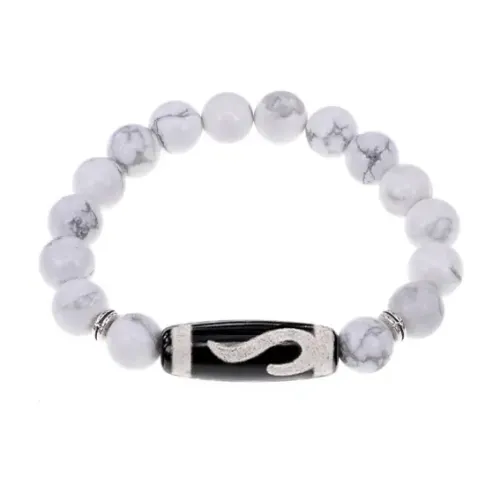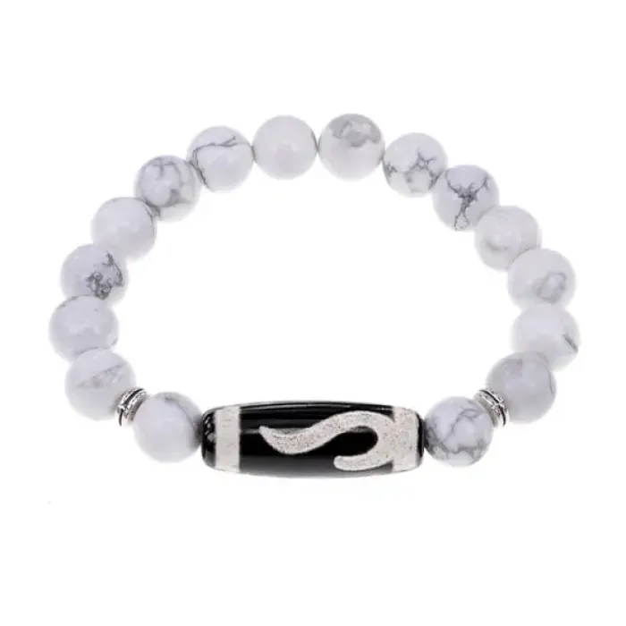 Браслет с бусиной Дзи Золотой ключ и нат.камнем Кахолонг BSDS-09-07