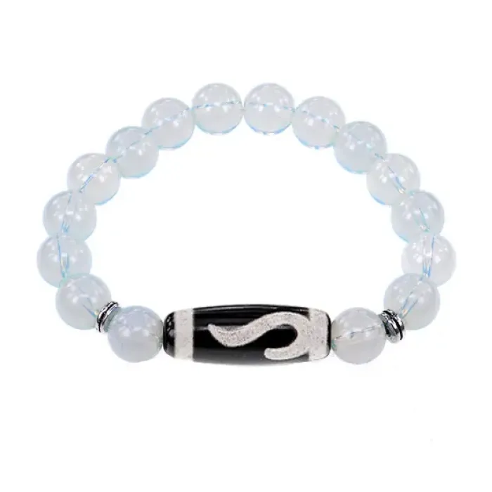 Стрейч-браслет из синтетического камня с тибетской бусиной Дзи из агата.