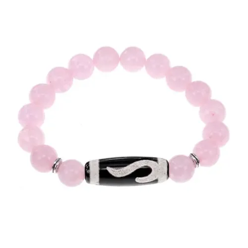 Стрейч-браслет из натурального камня с тибетской бусиной Дзи. Материал: агат и розовый кварц.
