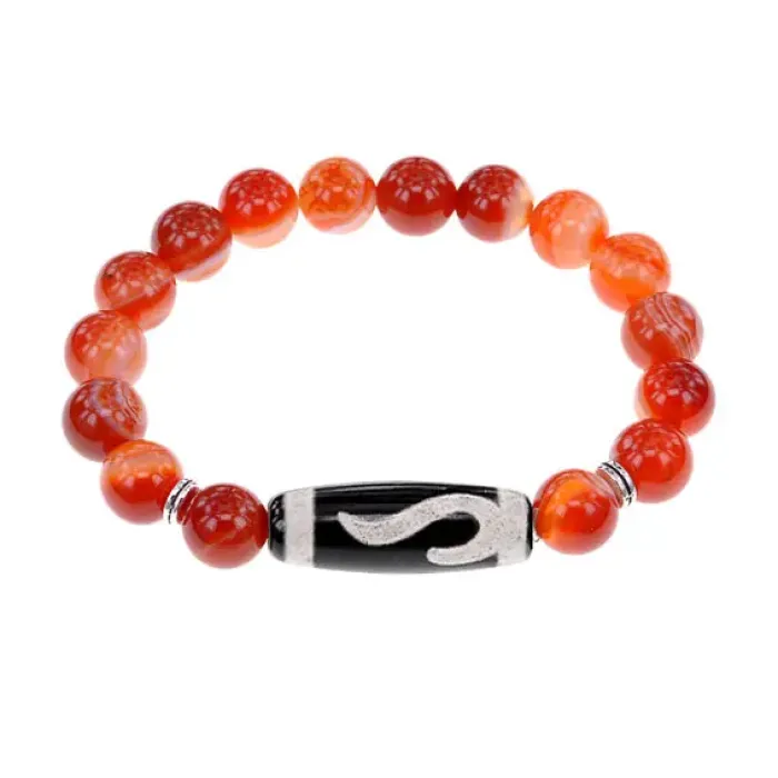 Стрейч-браслет из натурального камня сердолика с тибетской бусиной Дзи «Золотой ключ».