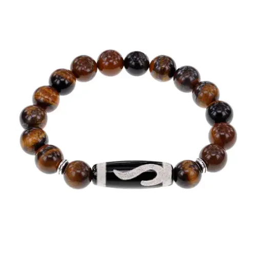Стрейч-браслет из натурального камня с тибетской бусиной Дзи из агата.