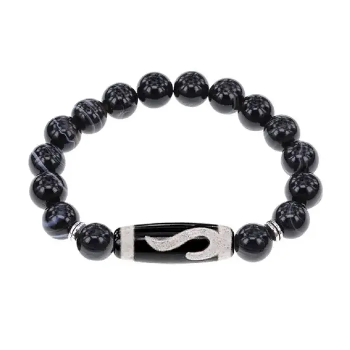 Стрейч-браслет из натурального камня с тибетской бусиной Дзи.