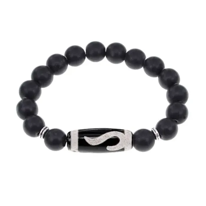 Стрейч-браслет из синтетического камня с тибетской бусиной Дзи из агата.