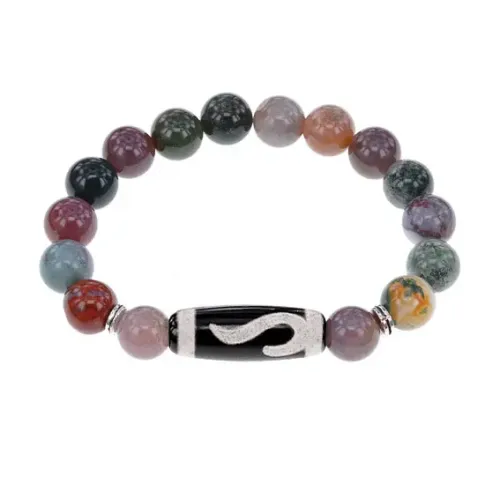 Стрейч-браслет из натурального камня с тибетской бусиной Дзи.