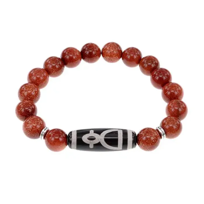 Браслет с бусиной Дзи Кубера и синт.камнем Коричневый авантюрин BSDS-11-01