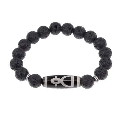 Браслет с бусиной Дзи Кубера и нат.камнем Лава BSDS-11-09