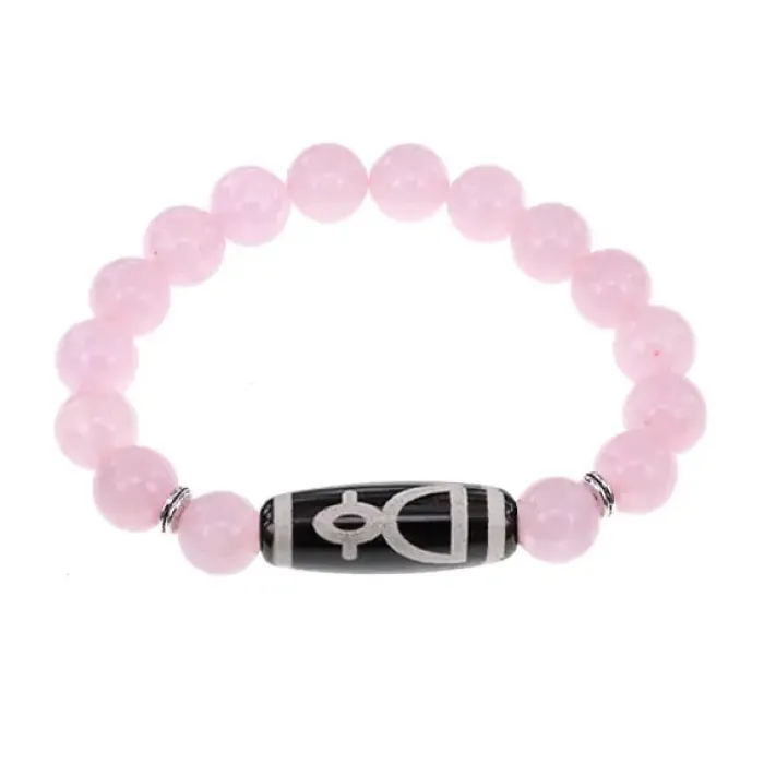 Браслет с бусиной Дзи Кубера и нат.камнем Розовый кварц BSDS-11-15