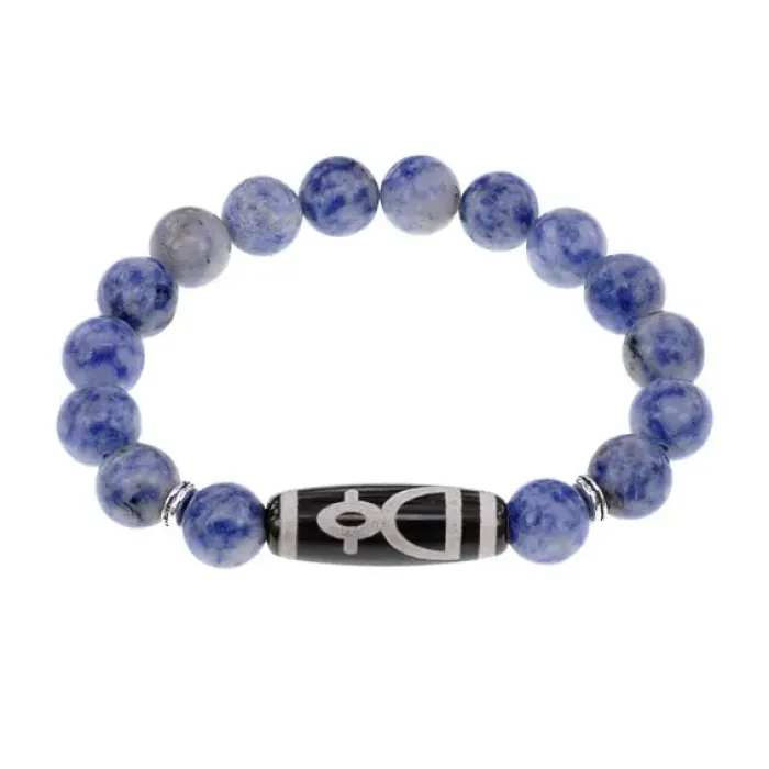 Браслет с бусиной Дзи Кубера и нат.камнем Содалит BSDS-11-18