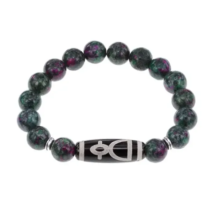 Браслет с бусиной Дзи Кубера и синт.камнем Цоизит BSDS-11-22
