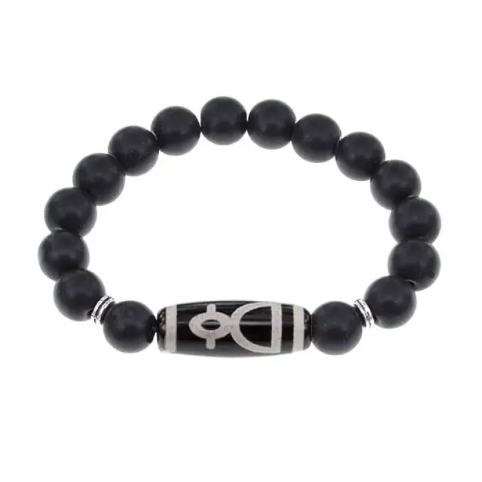 Стрейч-браслет из синтетического камня, украшенный тибетской бусиной Дзи из агата.