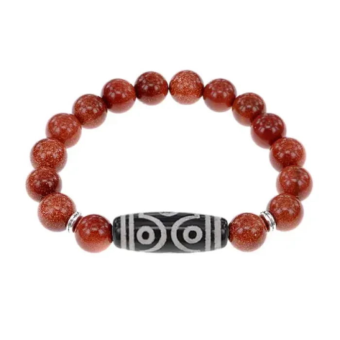 Браслет с 6-глазой бусиной Дзи и синт.камнем Коричневый авантюрин BSDS-12-01