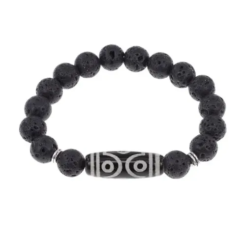Браслет с 6-глазой бусиной Дзи и нат.камнем Лава BSDS-12-09
