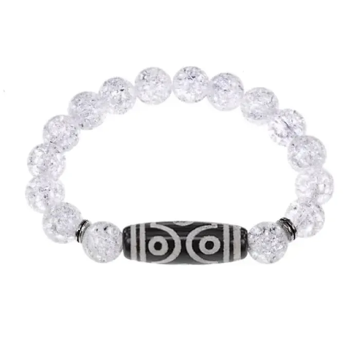 Стрейч-браслет из синтетического камня с тибетской бусиной Дзи из натурального агата.
