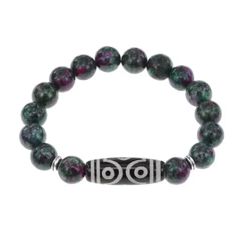 Браслет с 6-глазой бусиной Дзи и синт. камнем Цоизит BSDS-12-22