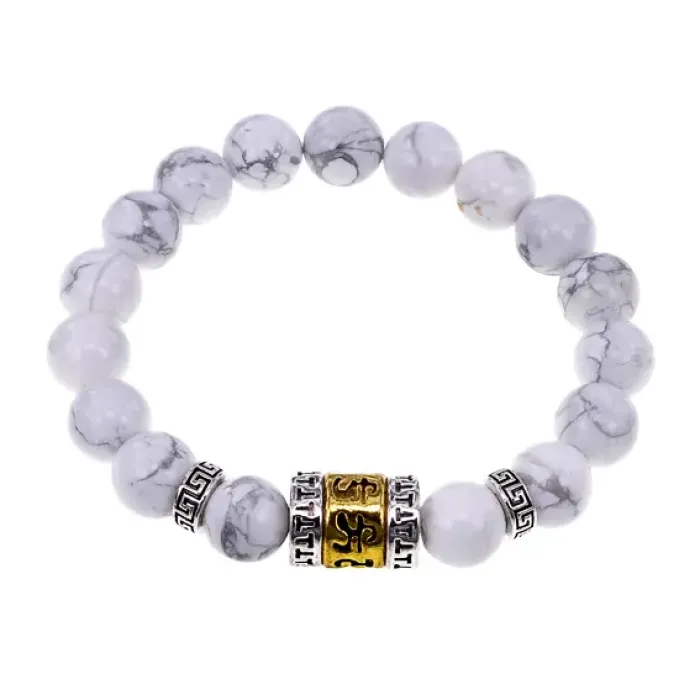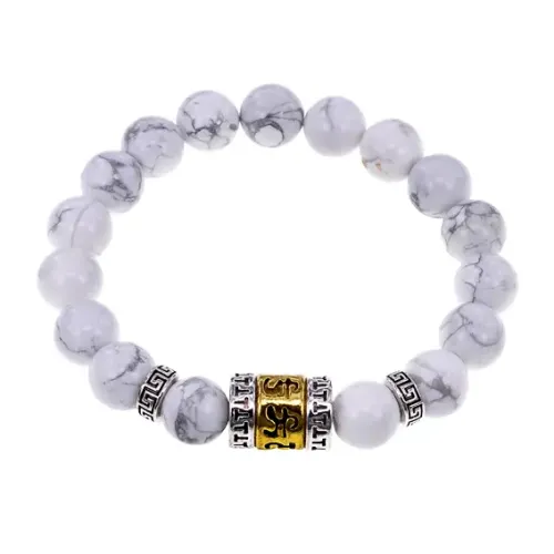 Браслет Исполнения Желаний — это стильный стрейч-браслет, выполненный из натурального камня кахолонг и дополненный тибетской бусиной Молитвенного барабана (Колесо Мани). Этот амулет традиционно используется для исполнения желаний и обретения внутреннего равновесия. Внутренний диаметр браслета составляет примерно 5,2 см, а диаметр бусин — 10 мм.
