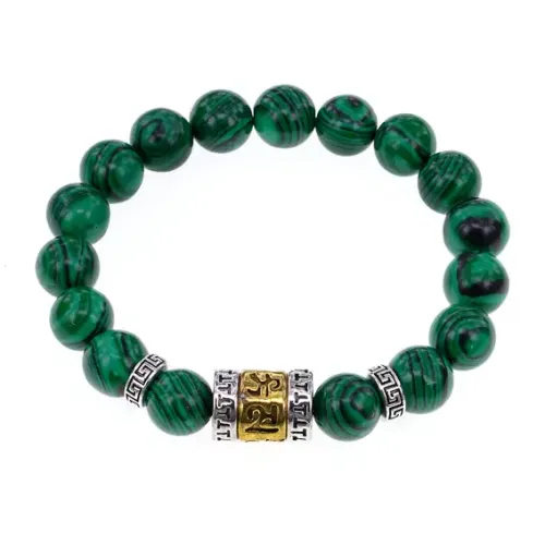 Браслет Исполнения Желаний — это уникальный стрейч-браслет, выполненный из синтетического камня, имитирующего натуральный малахит. В его дизайне присутствует тибетская бусина Молитвенный барабан (Колесо Мани), которая символизирует исполнение желаний и внутреннее равновесие.