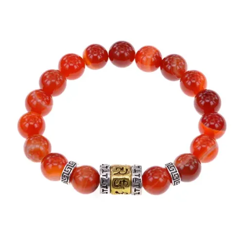 Стрейч-браслет из натурального сердолика с тибетской бусиной Молитвенный барабан.