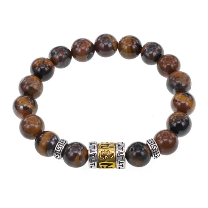 Материал и изготовление: Натуральный камень тигровый глаз, бусина Молитвенный барабан (Колесо Мани).