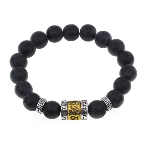 Браслет Исполнения Желаний — это стильный стрейч-браслет, выполненный из синтетического камня, который имитирует натуральный. Он украшен тибетской бусиной Молитвенный барабан (Колесо Мани), символизирующей исполнение желаний и внутреннее равновесие.