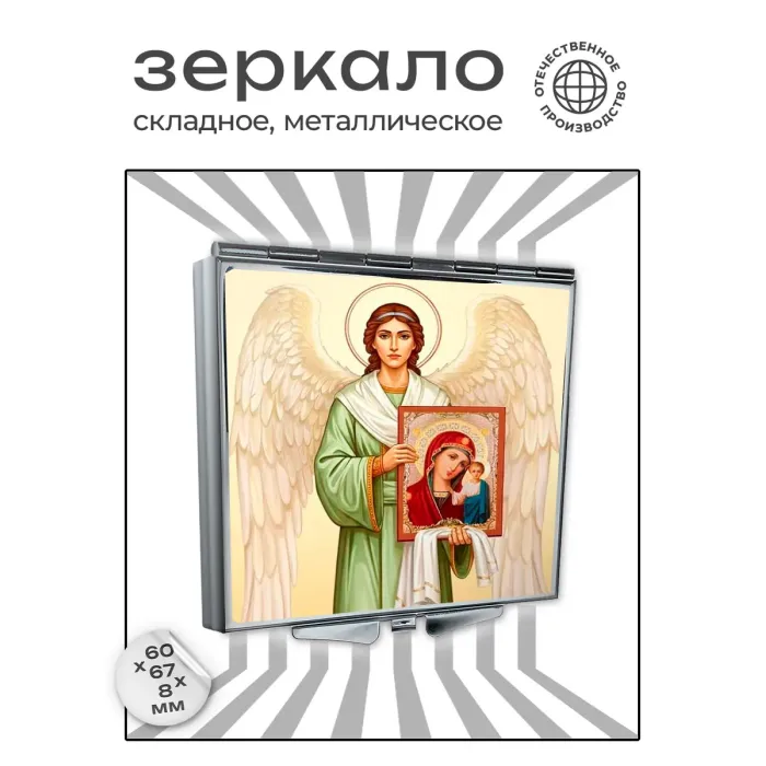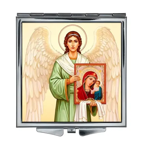 Складное зеркало квадратной формы с изображением ангела и иконы — это не только практичный аксессуар, но и символ духовности. Оно станет прекрасным подарком для близких или элементом декора.
