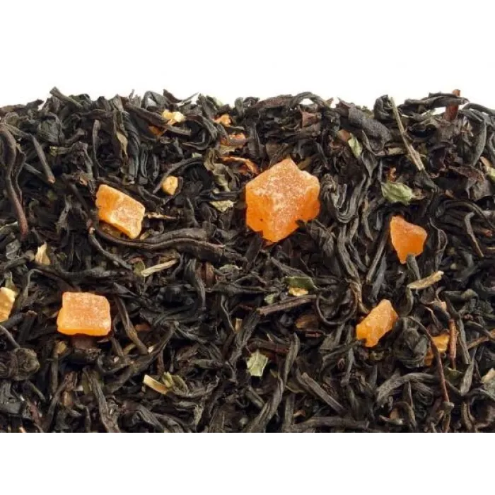 Крупнолистовой черный чай из Индии, создающий освежающий и бодрящий напиток. Его характер определяет сочетание терпкой чайной основы со сладостью абрикоса и ананаса, завершаемое прохладной мятной нотой и персиковым ароматом от натуральных ароматизаторов.