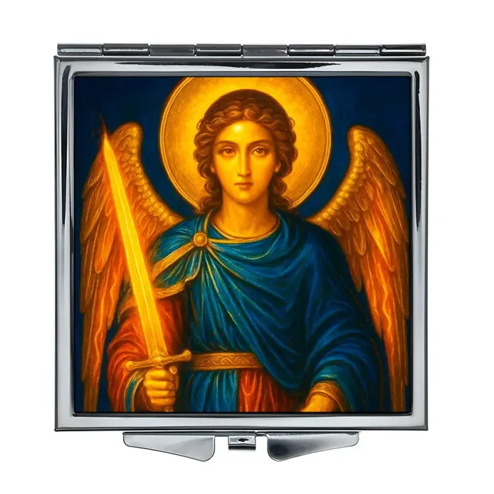 Складное зеркало с изображением Архангела Михаила — это не только практичный аксессуар, но и символ защиты и благословения. Изготовлено из высококачественного металла и стекла, оно станет стильным дополнением к любому образу. Основные особенности: