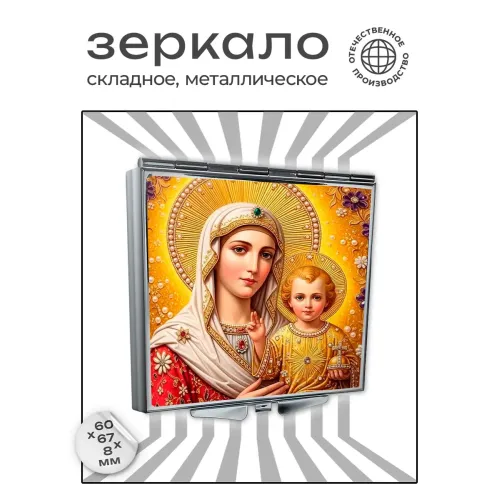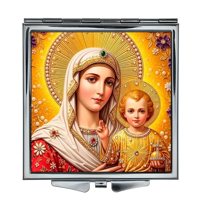Складное зеркало квадратной формы с изображением Богородицы и Иисуса — это не только практичный аксессуар, но и символ духовности. Оно идеально подходит для использования в повседневной жизни или как оригинальный подарок.