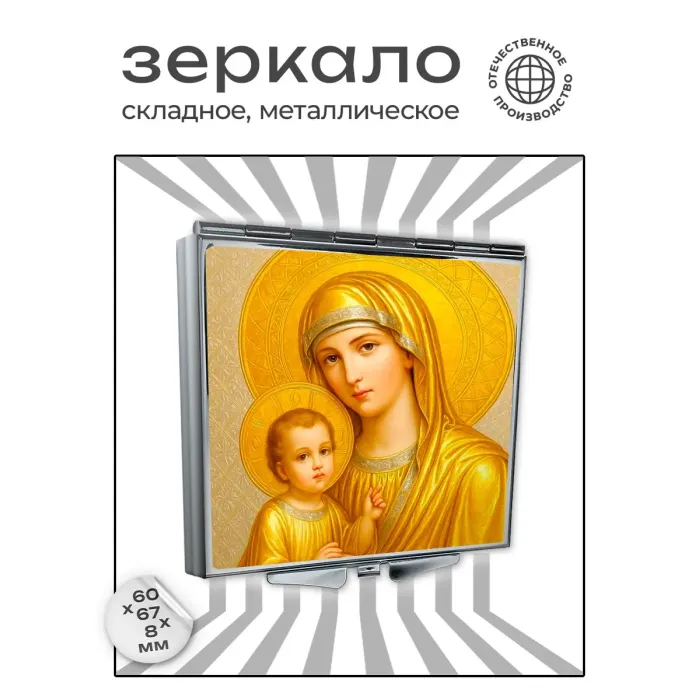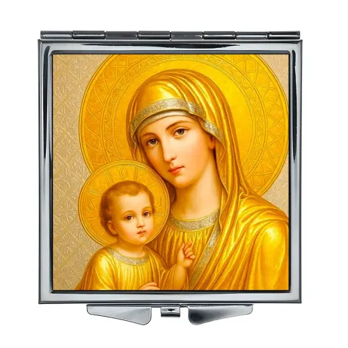 Складное зеркало квадратной формы с изображением Богородицы и Иисуса — это не только практичный аксессуар, но и символ духовности. Оно идеально подходит для использования в повседневной жизни или как оригинальный подарок.