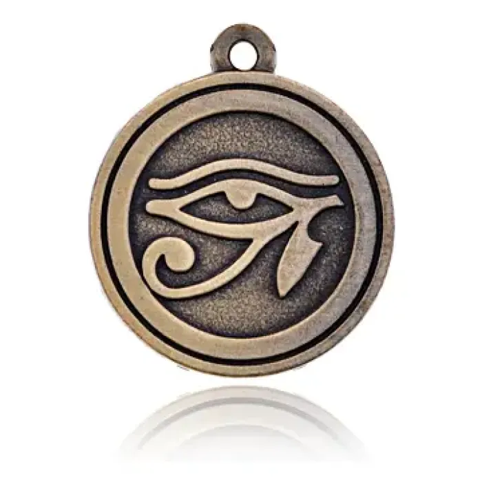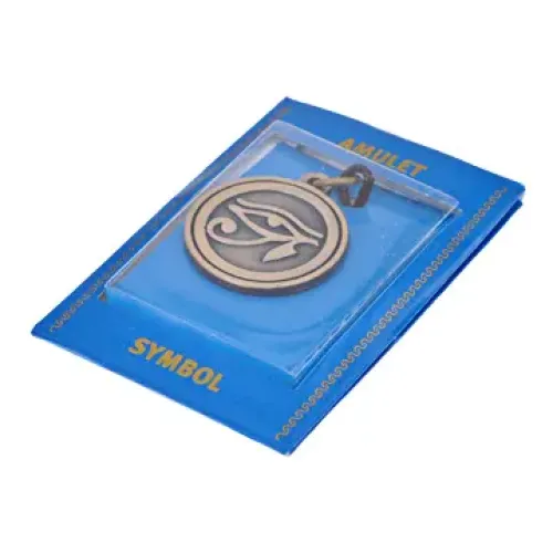 Амулет Око Ра — это уникальный сувенир, выполненный из металлического сплава и оснащённый шнурком. Этот амулет имеет глубокий культурный смысл, символизируя защиту и мудрость.