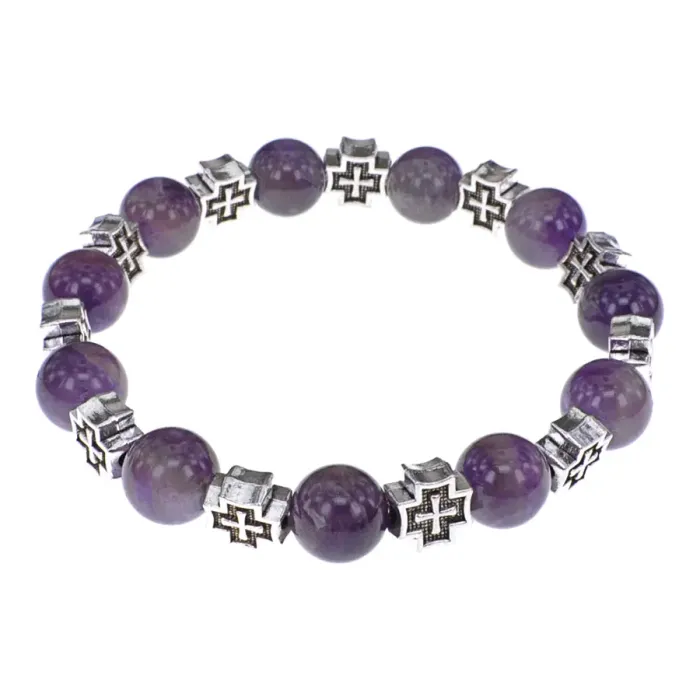 Браслет с крестами, Аметист, 10мм BSH-16-03