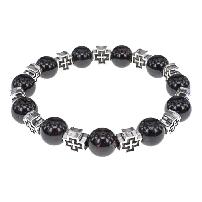 Браслет с крестами, Гранат, 10мм BSH-16-06