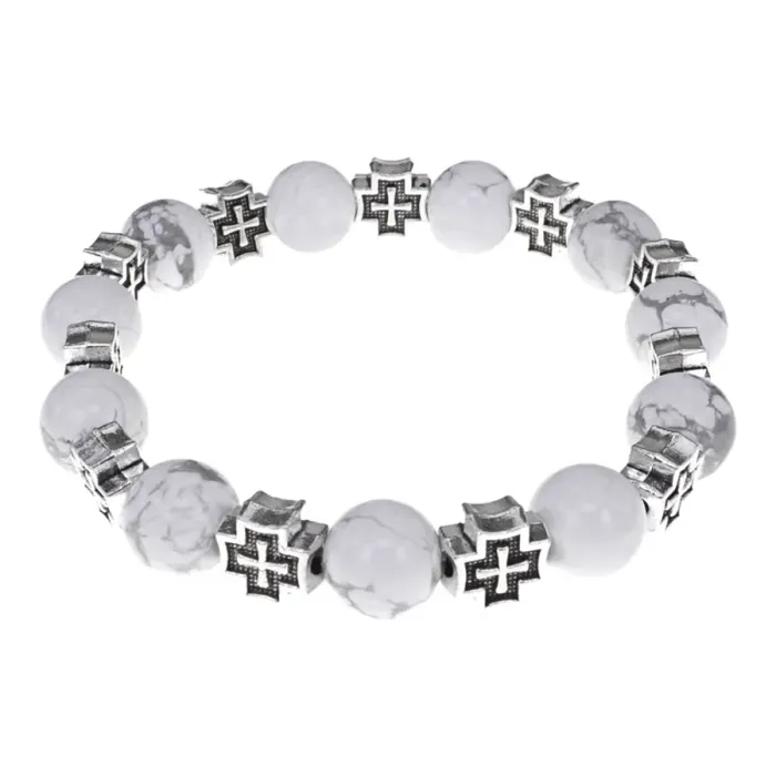 Браслет с крестами, Кахолонг, 10мм BSH-16-07
