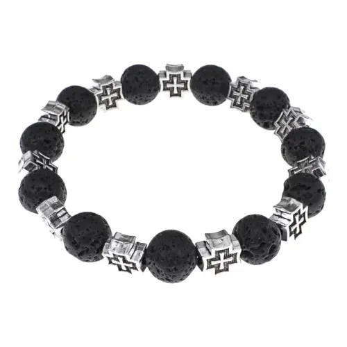 Браслет с крестами, Лава, 10мм BSH-16-09