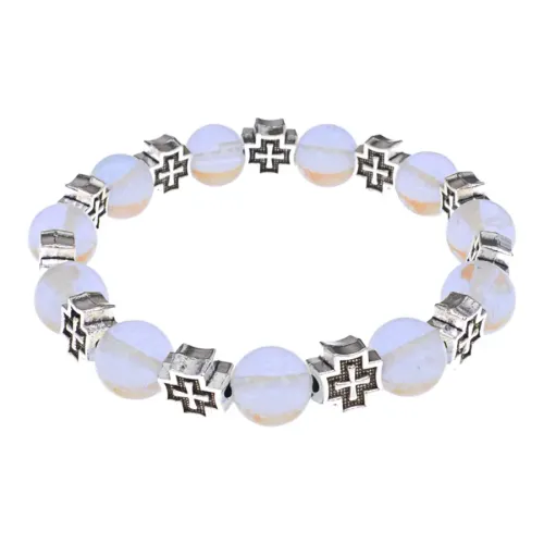 Браслет с крестами, Лунный камень, 10мм BSH-16-11