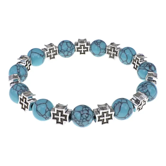 Браслет с крестами, Бирюза, 10мм BSHE-16-05